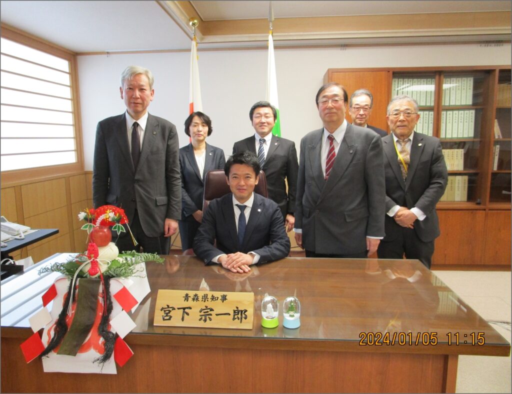令和6年1月5日新年のご挨拶のため、野崎会長をはじめ日當名誉会長など役員が宮下宗一郎青森県知事・小谷副知事を表敬訪問しました。